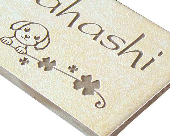 細かなイラストまで彫刻可能です。このセラミックタイルは表面を彫刻することで、素材色があらわれます。 着色していませんので、色落ちの心配がありません。
