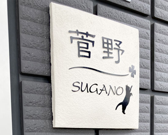 ステンレス板(2mm厚)、ねじ穴4カ所付き(表札裏面に取付した状態でお渡しします)