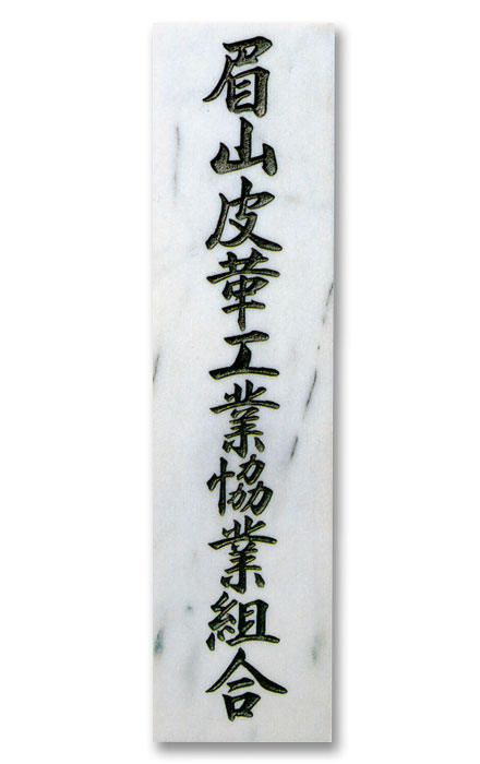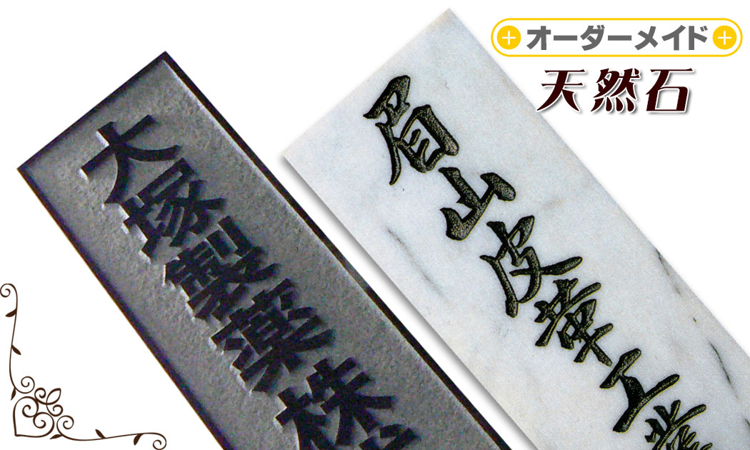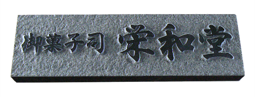 20cm程度から1mを超える看板までご希望のサイズで製作いたします。サンドブラストという加工法で彫刻します。サンドブラストとは圧縮された空気とともに砂(サンド)を高圧で吹き付け(ブラスト)する加工法で石材など硬い素材には最適な加工方法です。