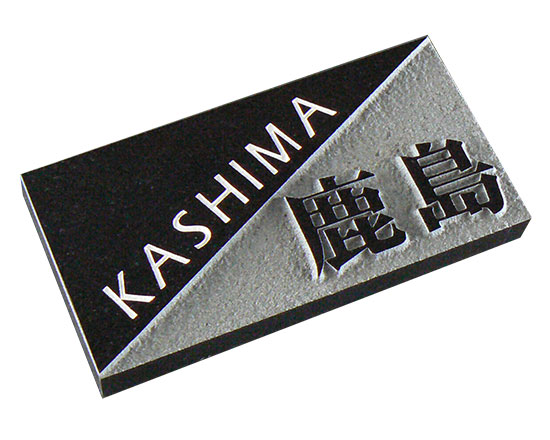 側面ブラスト仕上げは、側面も彫刻面と同様にサンドブラストで仕上げる方法です。浮彫(枠無)の場合は彫刻部と同じ色合いで一体感がでます。磨き仕上げに比べコストをおさえることができます。厚さは25mm±2mm。