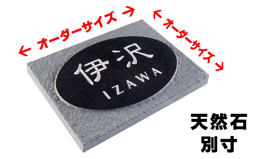 ご希望のサイズで製作いたします。サンドブラストという加工法で彫刻します。サンドブラストとは圧縮された空気とともに砂(サンド)を高圧で吹き付け(ブラスト)する加工法で石材など硬い素材には最適な加工方法です。