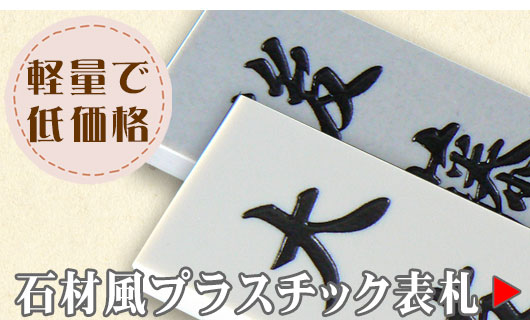 オーダーサイズの天然石表札をインターネット限定の特別価格で製作いたします。素材は7種類。一般的な姓のみの表札からおしゃれなデザイン表札まで、こだわりの表札が製作できます。